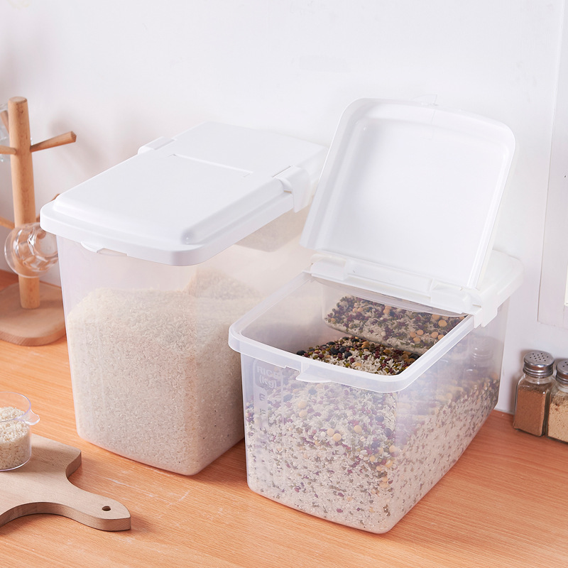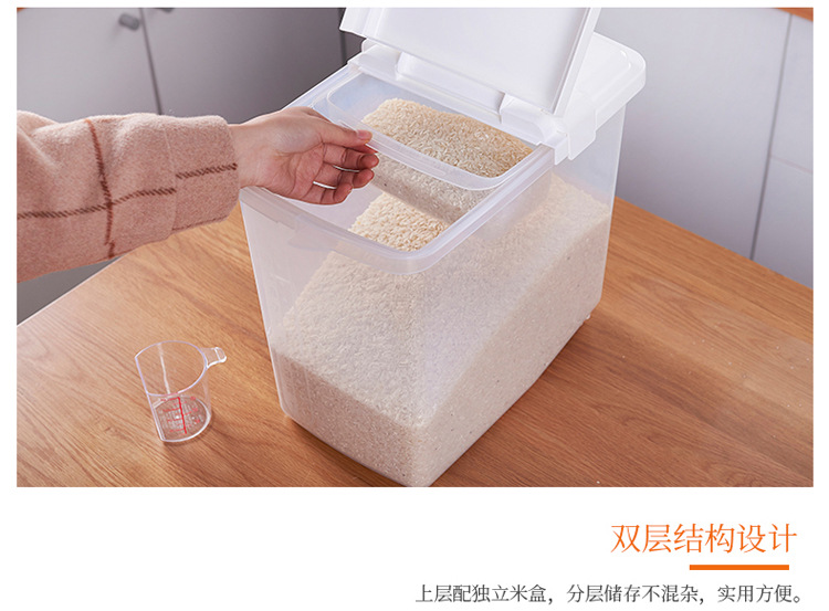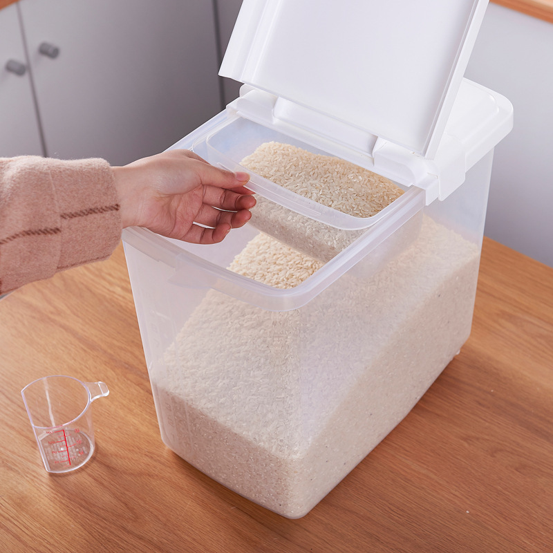 廠家現貨批發廚房翻蓋式透明10kg米桶儲米箱米缸防蟲防潮加厚帶蓋
