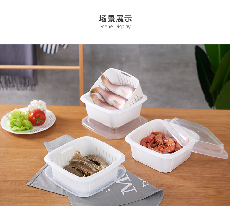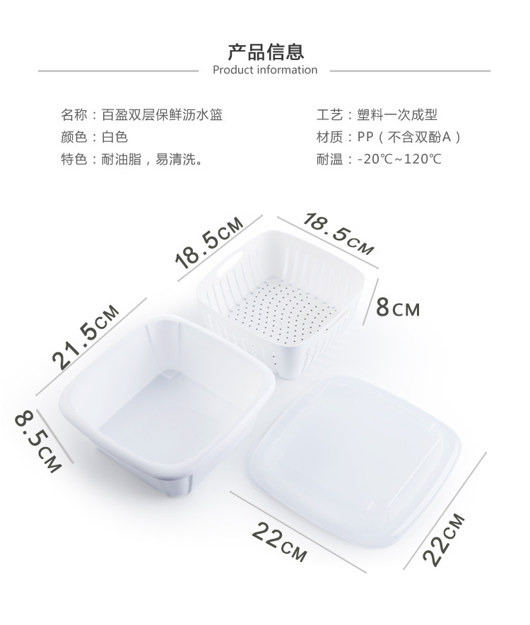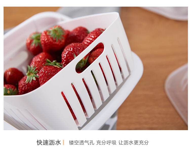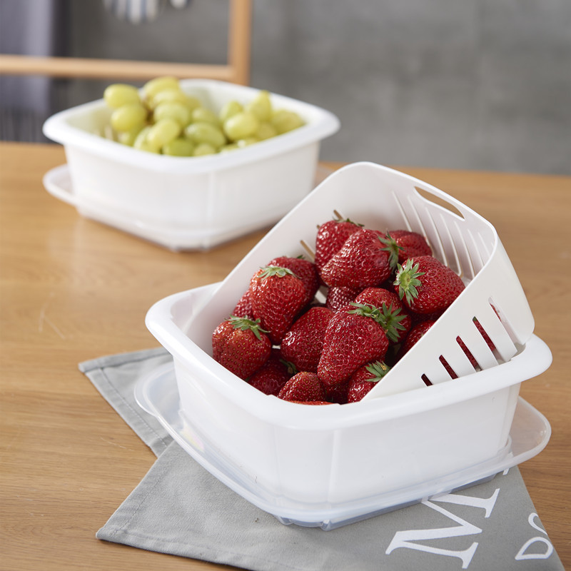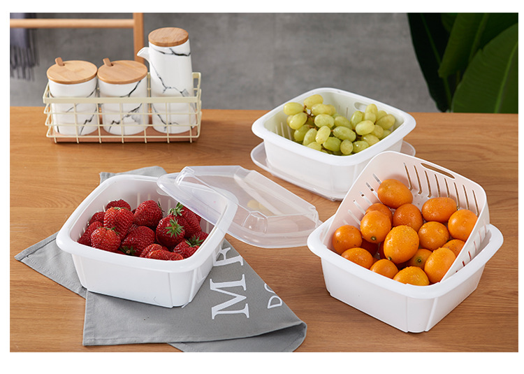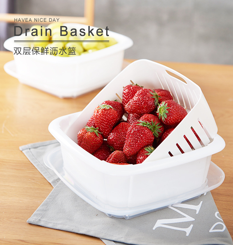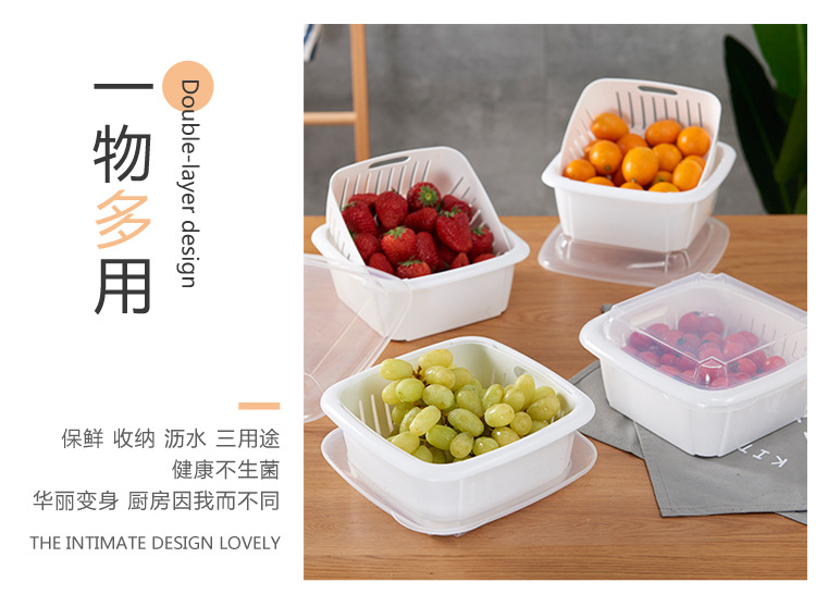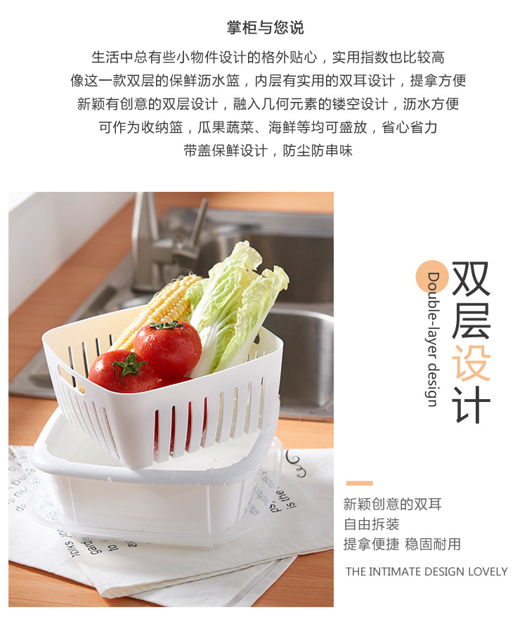 廠家現貨批發 新品廚房瀝水籃 雙層帶蓋方形蔬菜水果瀝水籃洗菜筐