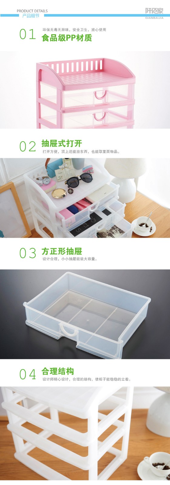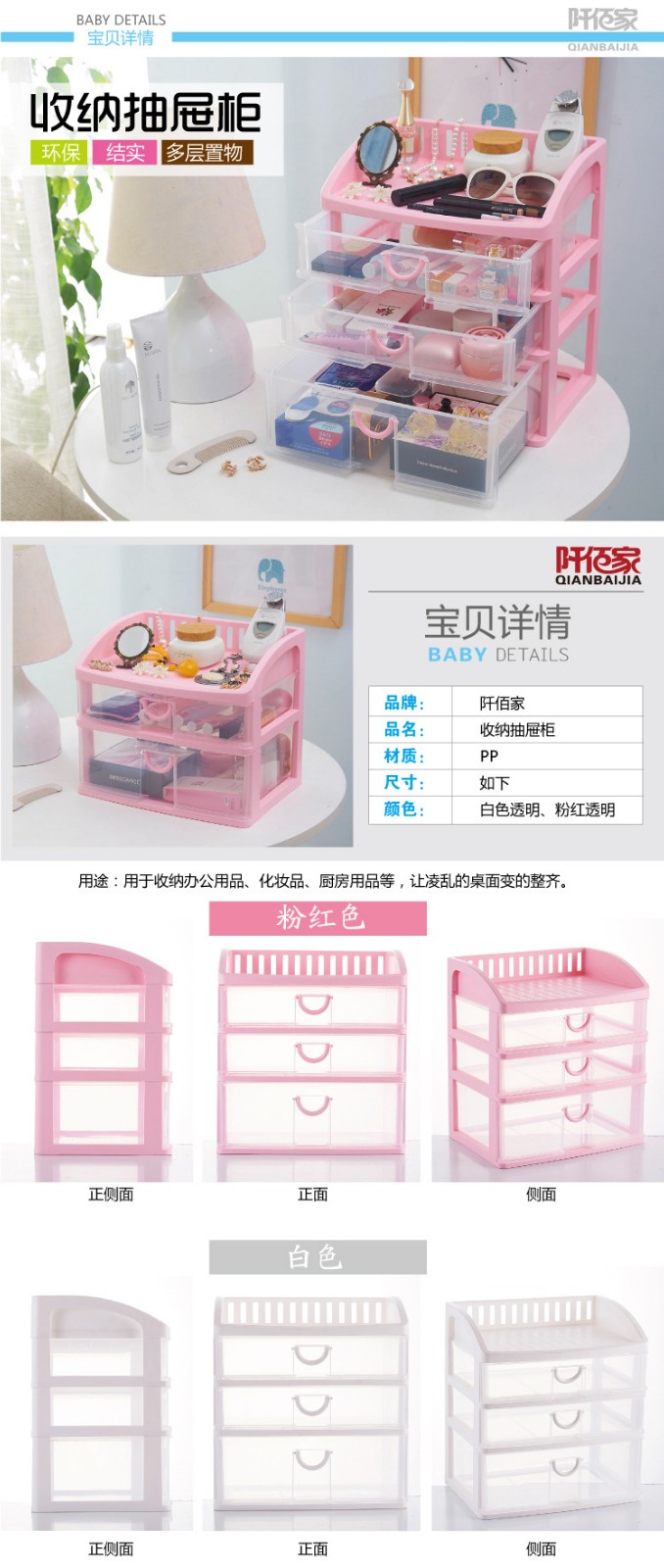 抽屜收納柜,材質優良,無毒無味;3層抽屜式設計,可以放置更多的物品哦