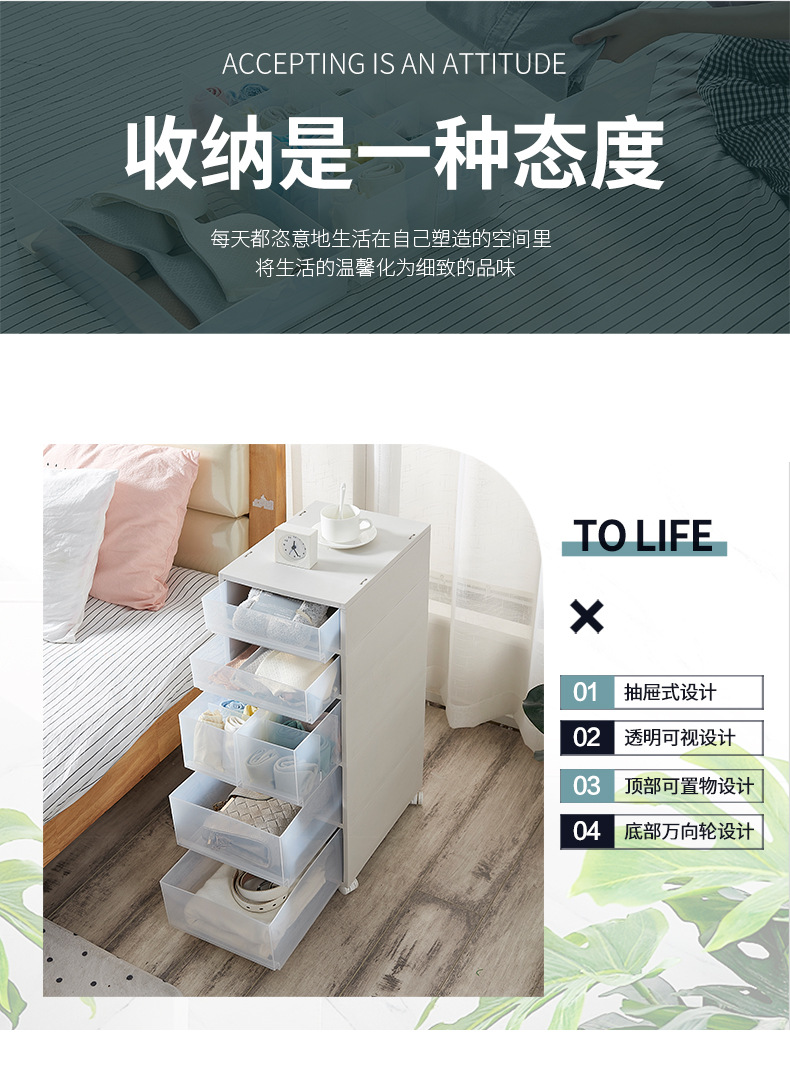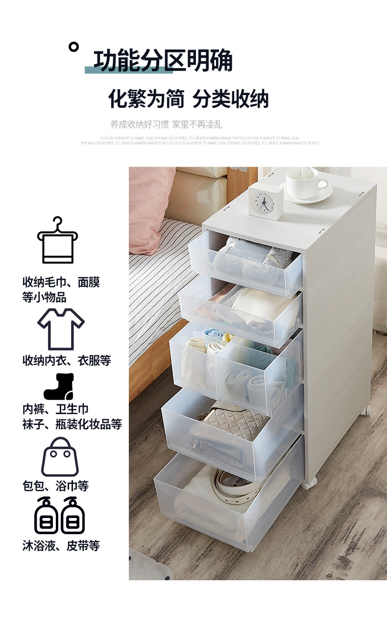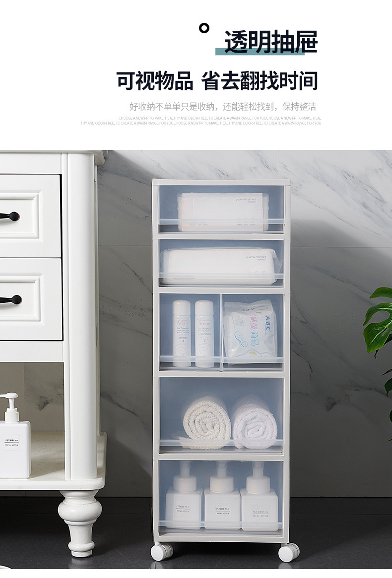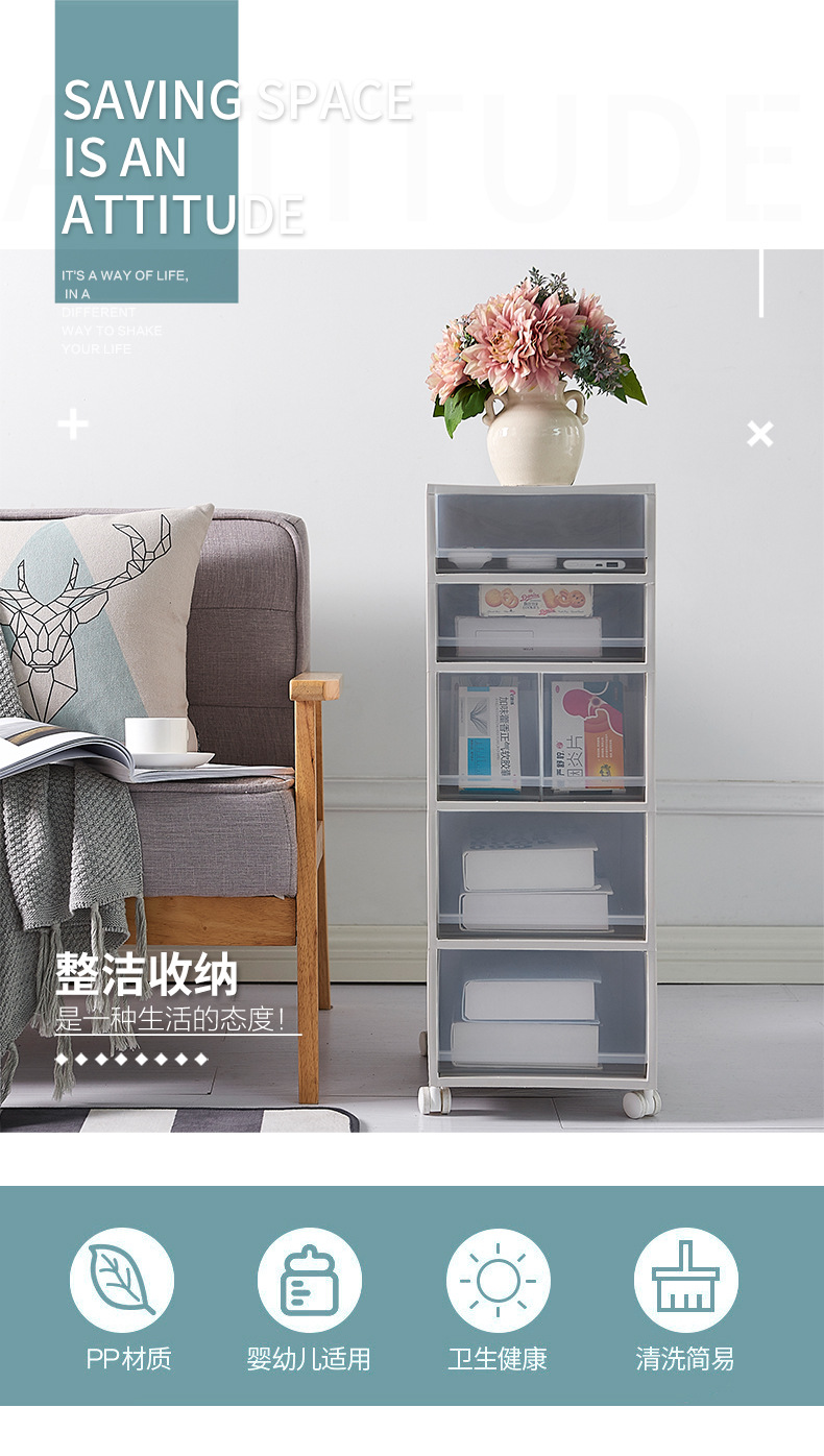 廠家現(xiàn)貨批發(fā)多功能夾縫抽屜柜帶輪塑料組合柜簡(jiǎn)約現(xiàn)代雜物收納柜